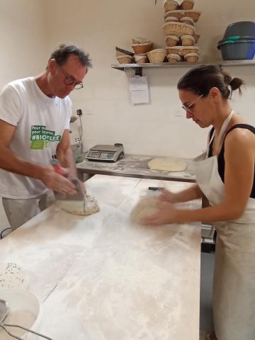 Pain au levain naturel à la farine de petit épeautre, moulé et cuit dans un four à bois